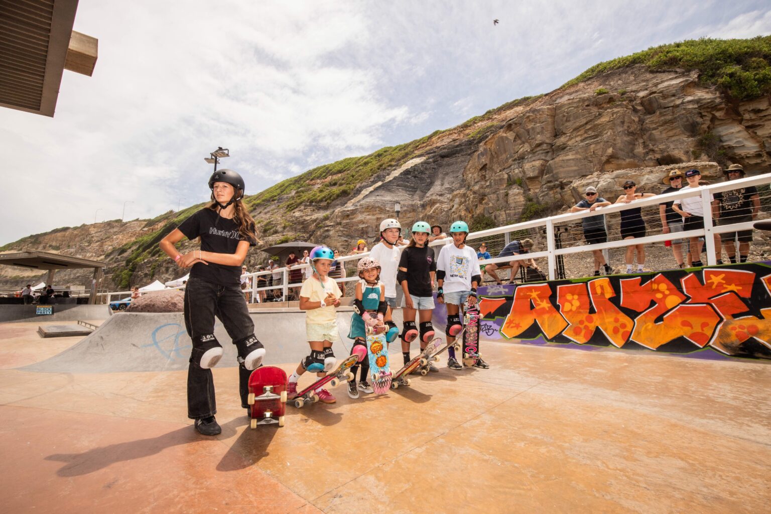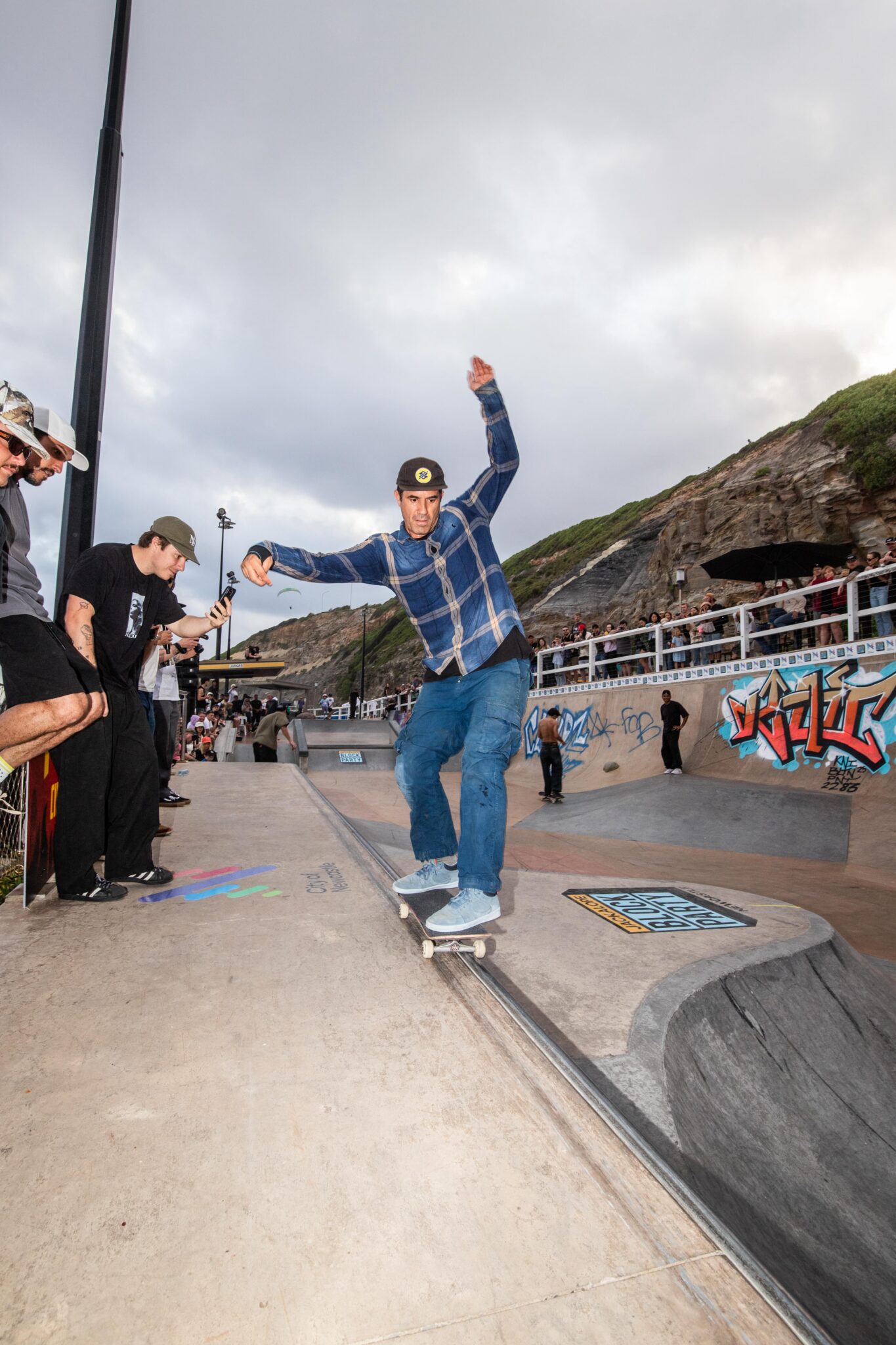 But beyond the weather, another major challenge awaited us: the South Newcastle Beach Skatepark itself. Its hybrid flow park / street park structure required real thought to ensure a fair format. The adaptation wasn’t easy, but the final setup allowed every skater to shine in their own discipline, whether street or transition. The skatepark, with its unique identity, ultimately served the event perfectly.
