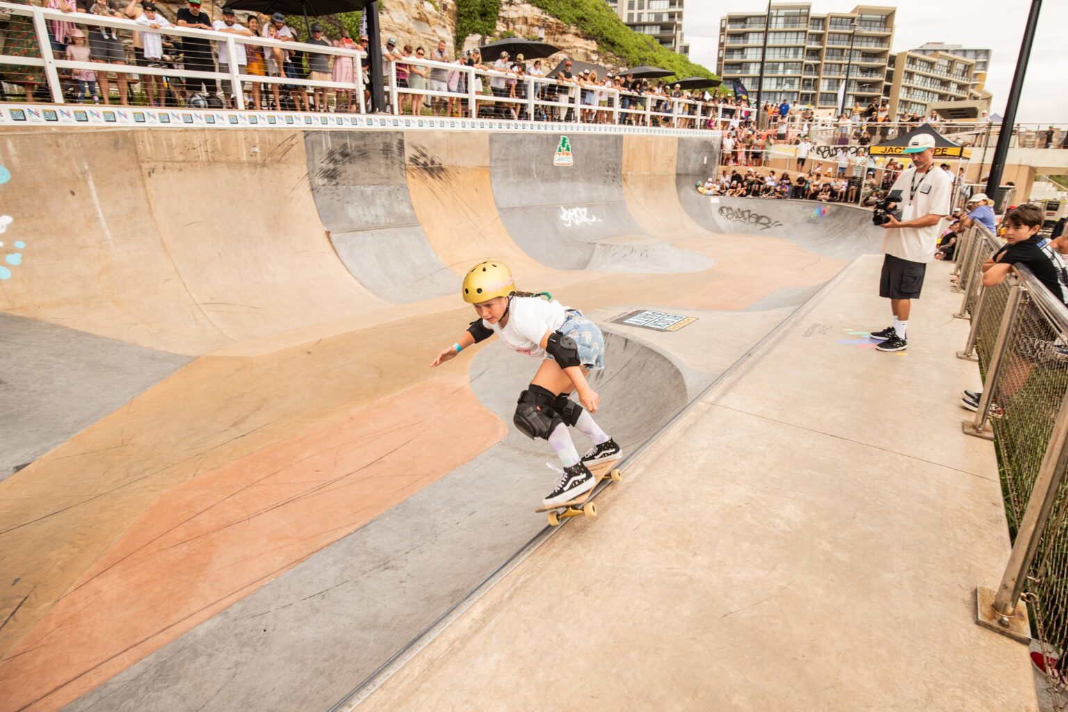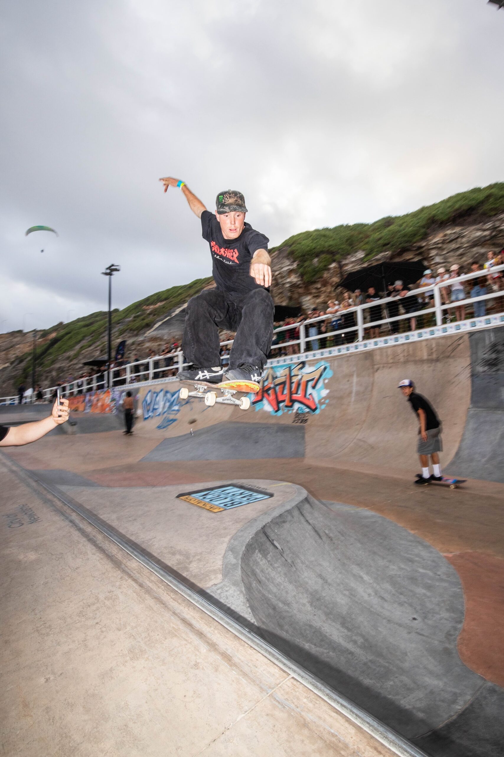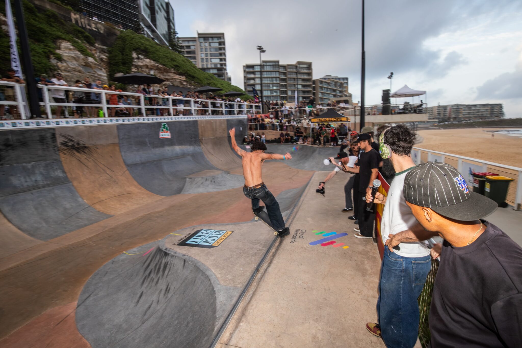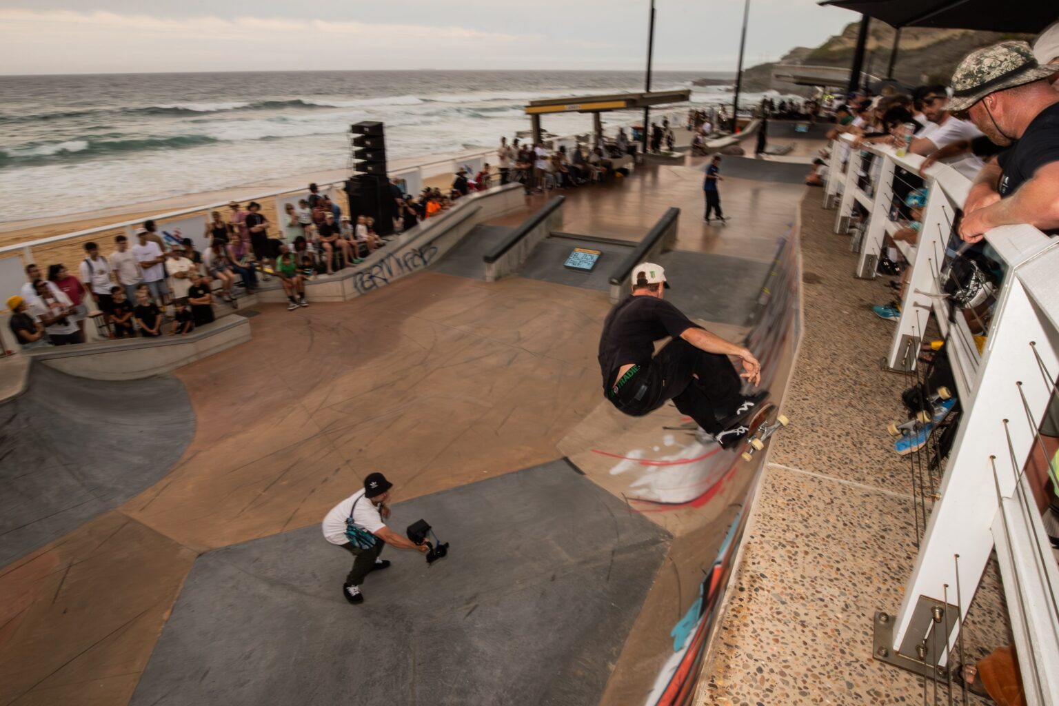 Together, they transformed the skatepark into a true arena, surrounded by a crowd packed tightly around the oceanfront bowl.