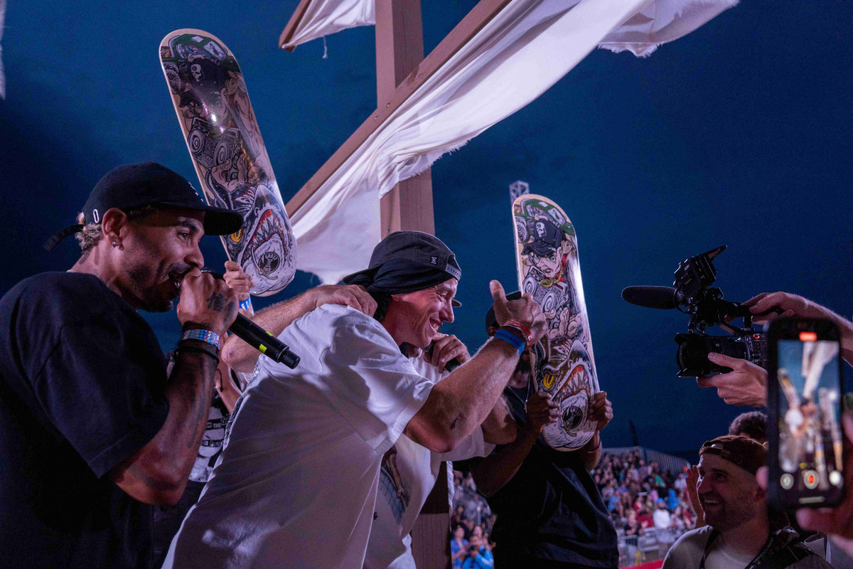 Street & vert skateboarding competitions with international pros, BMX & Moto X demos, Skimboarding, jet ski freestyle, and highline.